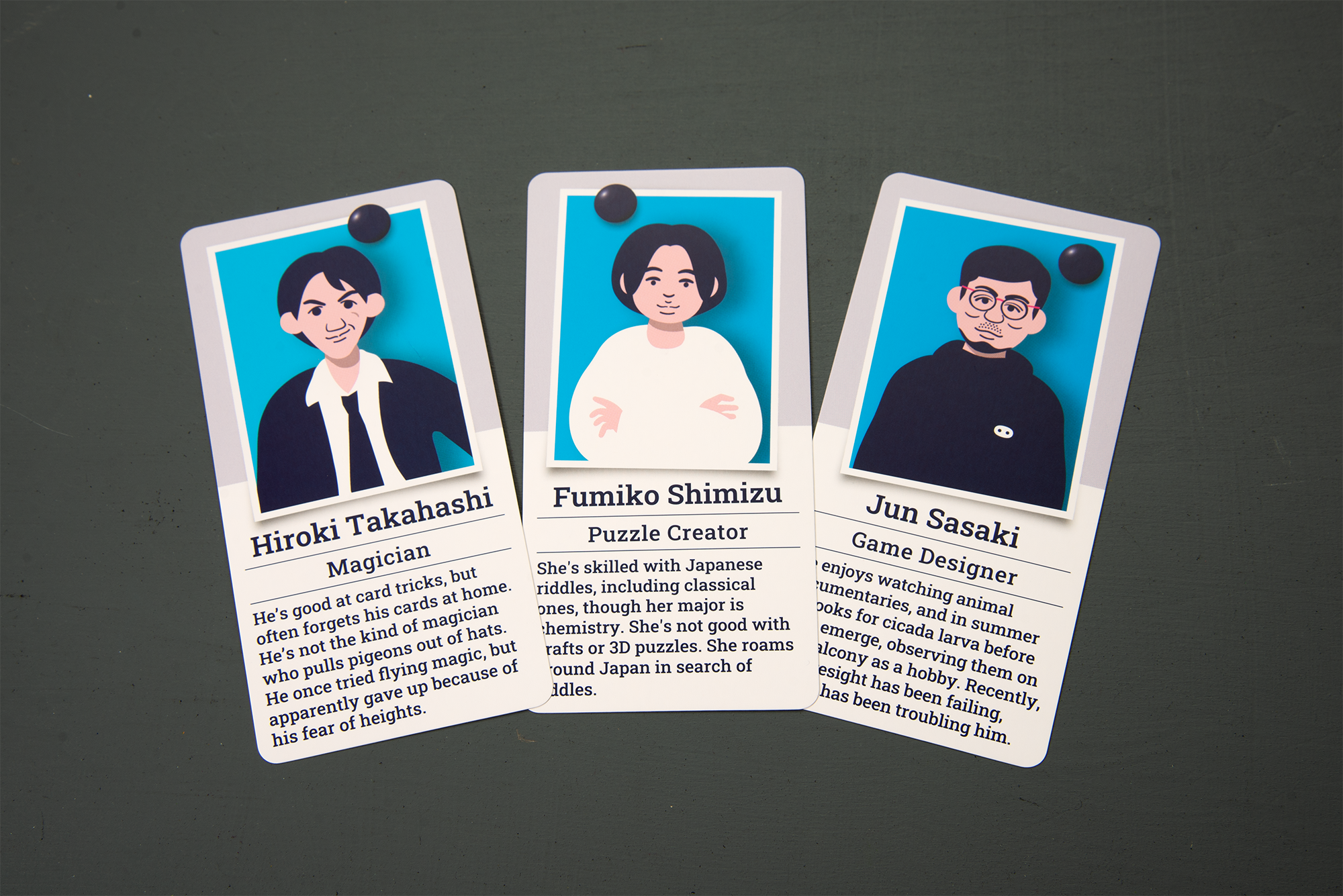 When you purchase our previous new release Dying Message, you'll receive 3 exclusive suspect cards. What’s that? The designers have become suspects!?