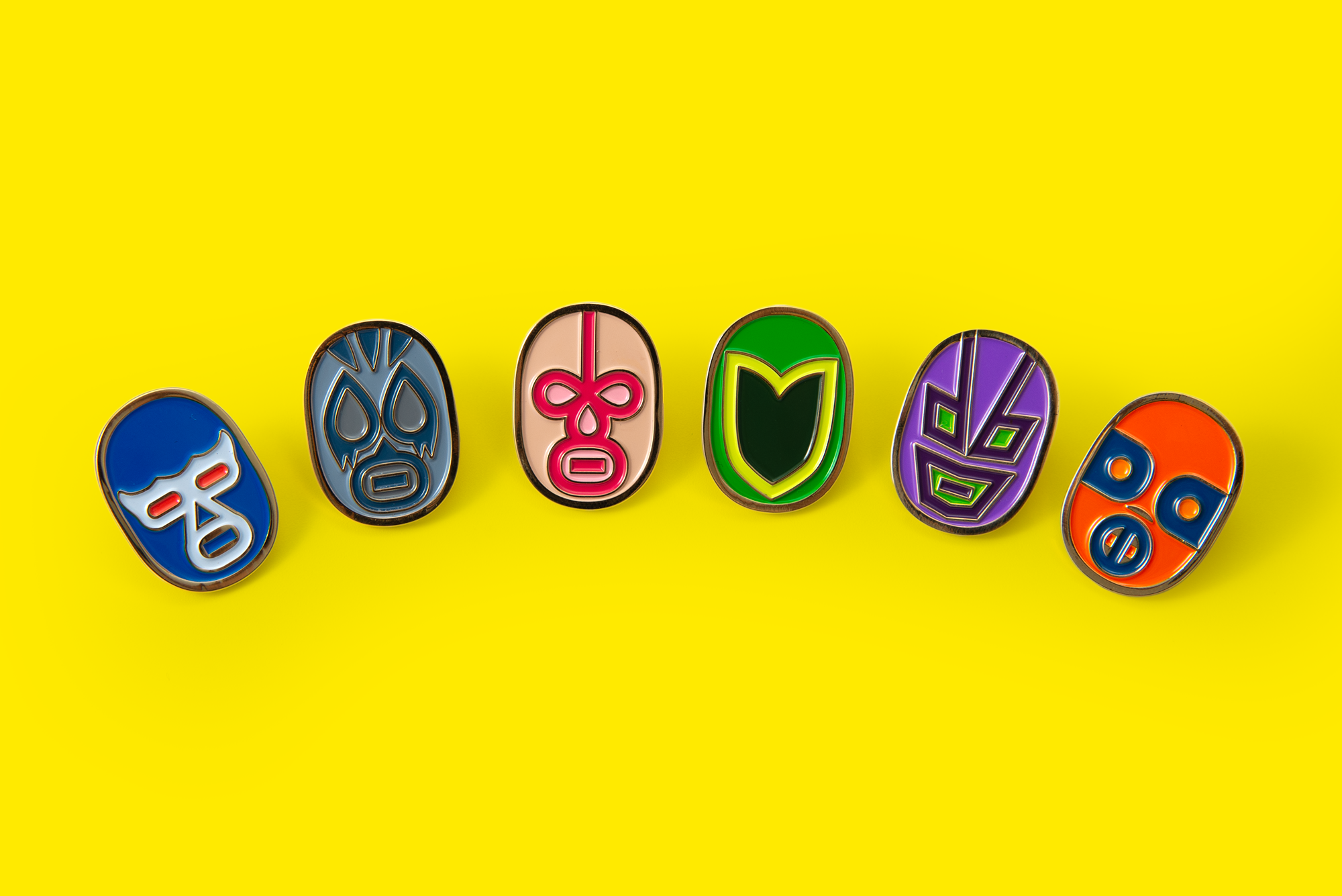 Maskmen Pin Badge The wrestlers from “Maskmen” have finally arrived...as pin badges! Will you line them up by their strength? Or wear them separately in different places? Put the wrestlers to work however you like!