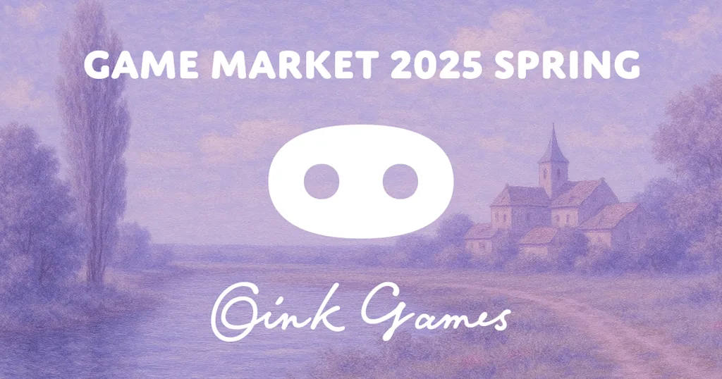オインクゲームズは5月17日(土)・18日(日)に幕張メッセ展示ホール 5・6・7・8で開催される「ゲームマーケット2025春」に出展します。会場へのアクセスなど、開催概要についてはこちら。ブースは「34」です!