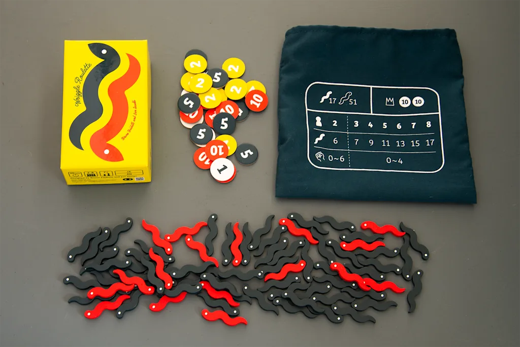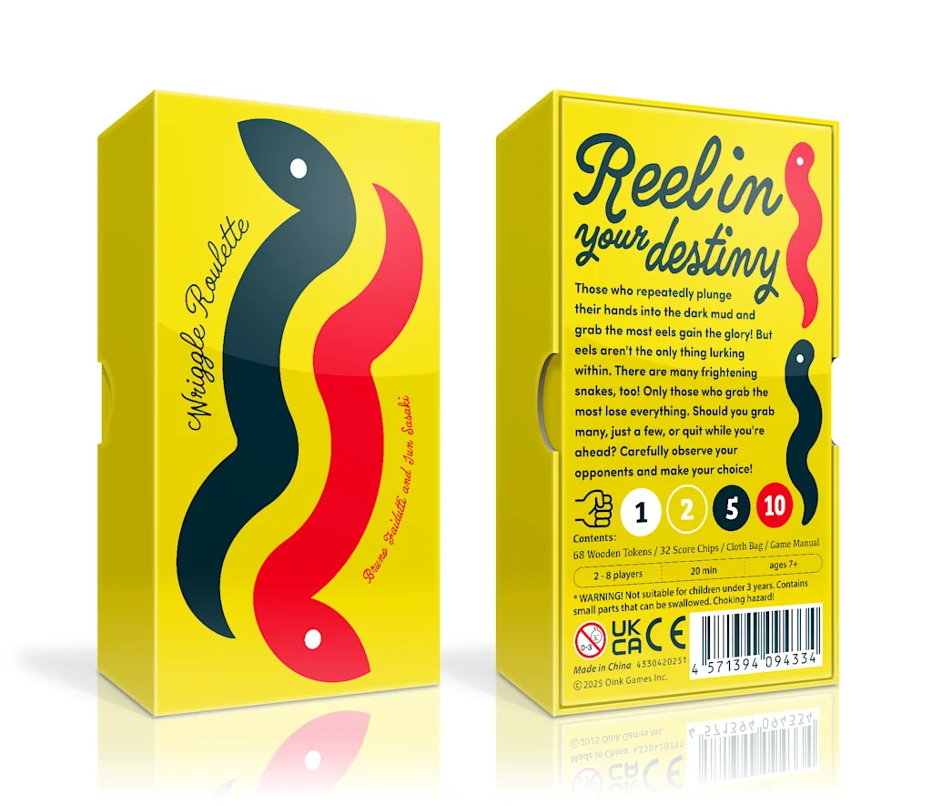 Board Game "Wriggle Roulette" Set for May 2025 Release A push-your-luck game where players reach into a bag filled with eels—and also snakes—trying to grab as many eels as they can.