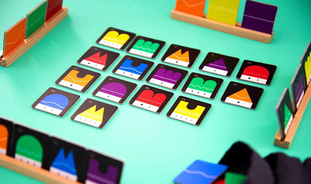 The residents of this town can't stand it when houses with the same shape or color are lined up with each other. Try to build as many houses as you can while keeping in mind which houses in your hand can be built at the end.