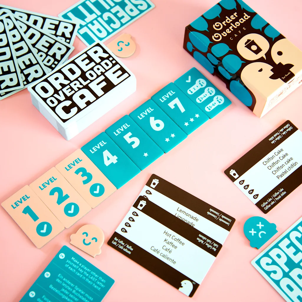 At the Oink Games booth, we'll be selling our new games Quickity Pickity, Order Overload: Cafe and TOWN66. Of course SCOUT nominated for Spiel des Jahres 2022 and HEY YO nominated for innoSPIEL 2022 are available. The older games will also be available at reduced prices at the venue. We will also be selling Pins of SCOUT, HEY YO and Startups. Oink Games 12th Anniversary Playing Cards, Moon Adventure Pocket Clear Bottle and the expansion dice set for Deep Sea Adventure are also available!