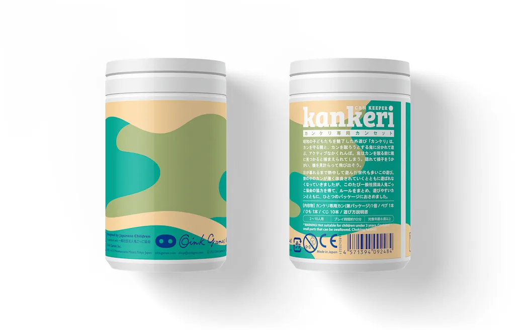 「カンケリ専用カンセット」では、子どもたちに愛された「カンケリ」のシンプルな面白さはそのままに、ルールをまとめています。遊びやすいアイテム一式を収容したプラ製のパッケージは、そのままカンとして使えるよう、蹴りやすい大きさにこだわっています。日本の鬼ごっこ文化の歴史から「カンケリ」に迫る、一般社団法人鬼ごっこ協会による解説本「カンケリのデザイン」もセットになった商品です。