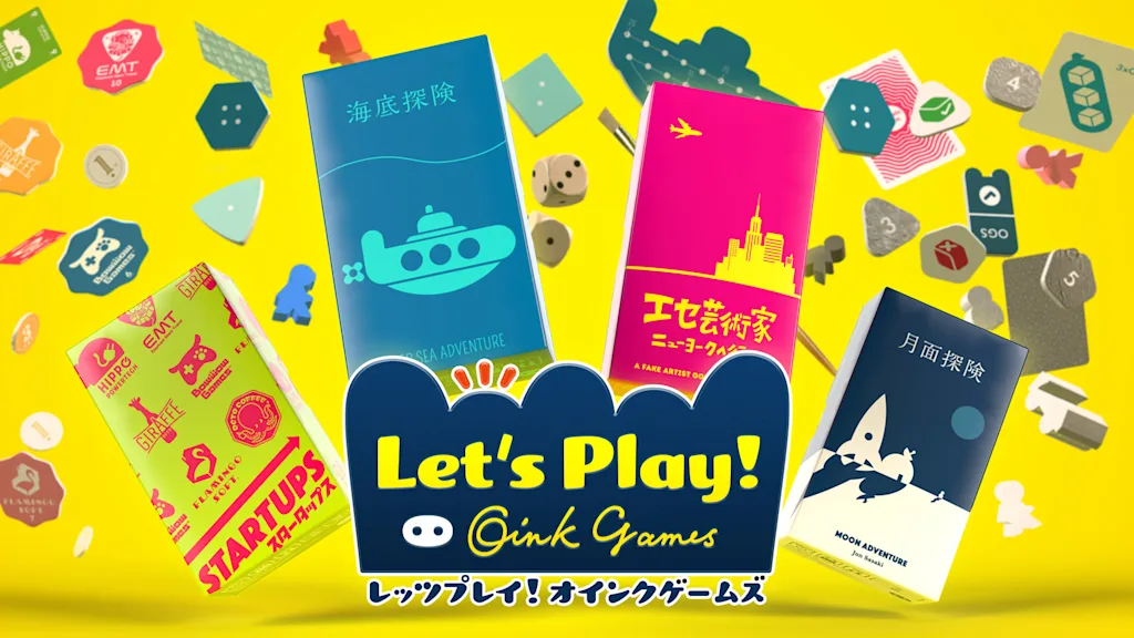 オインクゲームズはNintendo Switch用ソフト「レッツプレイ!オインクゲームズ」を2021年12月16日に発売しました。人気ボードゲーム「海底探険」「エセ芸術家ニューヨークへ行く」「スタータップス」「月面探険」を、オンラインやオフラインで、1~8人で遊ぶことができます。ダウンロード販売の価格は2,500円(税込)で、今後もタイトルを追加予定です。